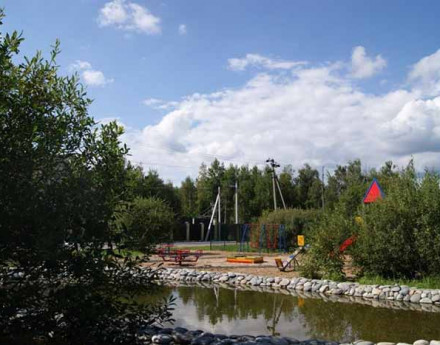 Кроме этого, благоустройство поселка включает спортивную и детскую площадку, зону отдыха на берегу имеющегося на территории небольшого водоема и прогулочную зону с выходом в окружающий лесной массив.