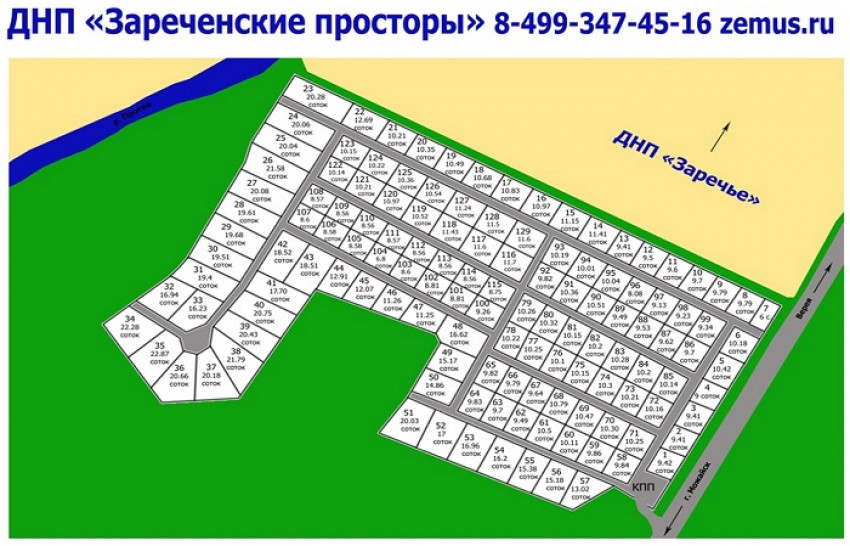В 85 километрах от МКАДа и всего 10 от Можайска расположены территории дачного поселка «Заречье». Это название очень точно подходит этим землям, потому что они почти окружены рекой Протвой. Треть поселка расположена как бы на полуострове, и часть коттеджей имеют собственный выход к реке. Это большой плюс и для отдыха и для экологии.