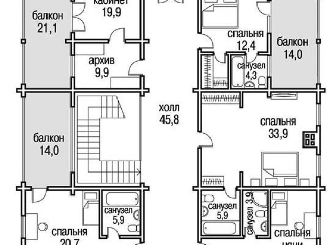 Дома от 208.6 до 326.5 м2. Участки от 20 до 35 соток.