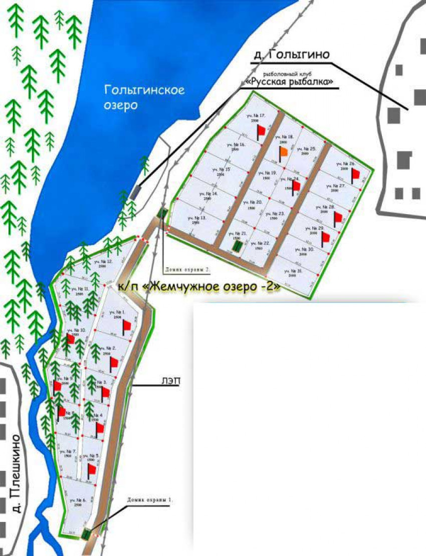 В поселок проведено электричество и газ, проложены внутренние дороги и ливневая канализация, установлено ограждение, работает охрана. Участки «Жемчужное озеро-2» предлагаются без обязательного подряда и сроки строительства, так же как и окончательный облик поселка зависят от будущих владельцев.