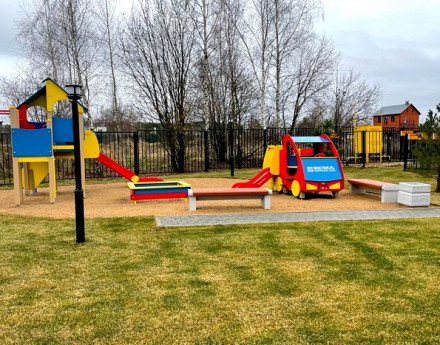 Своей инфраструктуры в поселке не предусмотрено, в это нет необходимости. Для жителей оборудована зона отдыха, установлен детский игровой городок, на общественных пространствах выполнено ландшафтное озеленение.